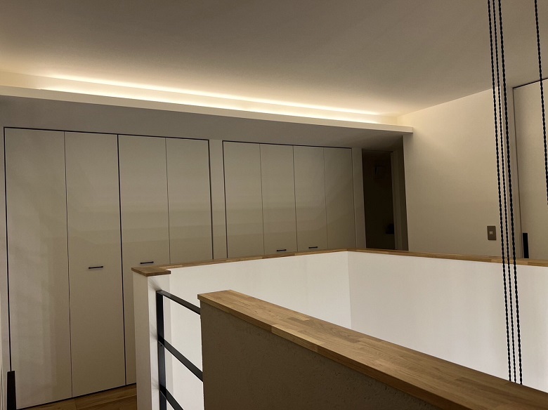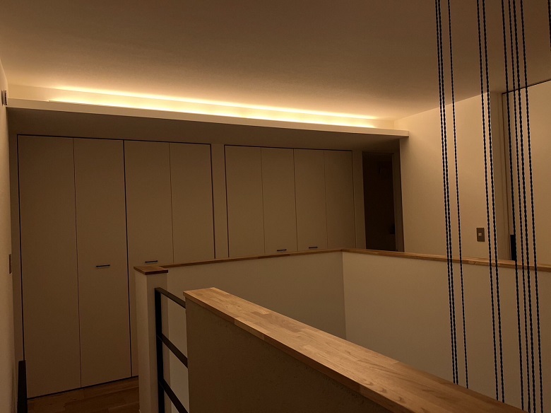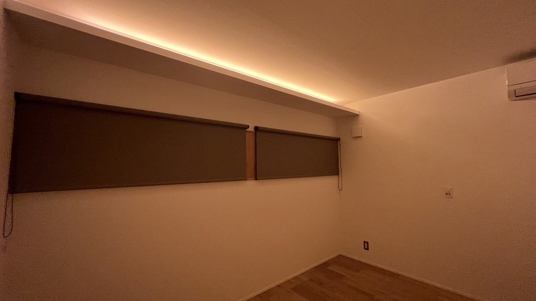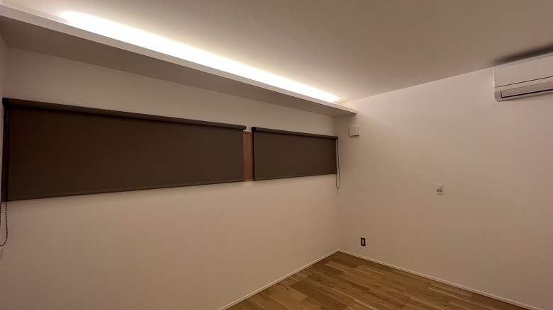 主寝室もダウンライトはあえて設けず、間接照明のみなっています。