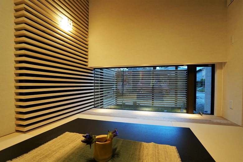 吊押入れの下の床の間には、地窓を設け、自然の光を取り入れている。