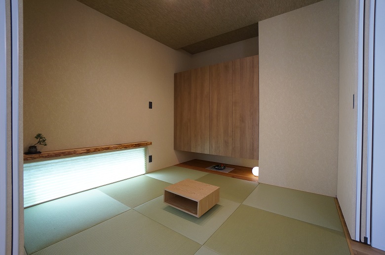 洋室と一体となる和室だからこそ、スッキリとした造りで調和を保ちつつ、随所で和の趣を感じられるようコーディネートされている。