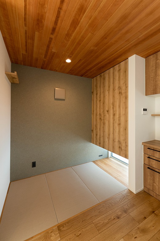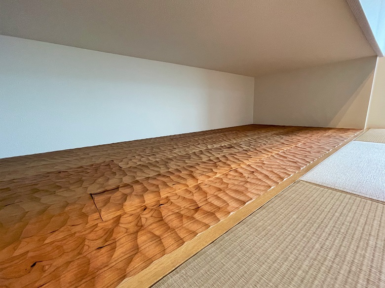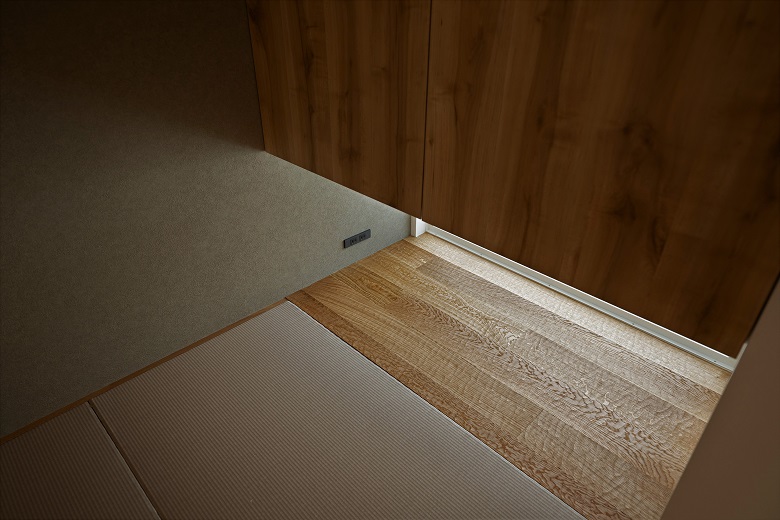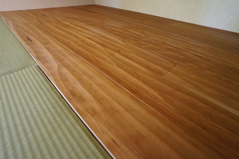 吊押入れの下には、アメリカンブラックチェリーの床板を配置。