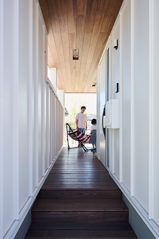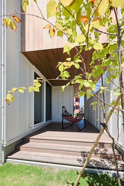 遊歩道からのプライバシーを確保しつつ、風と光を取り入れる設計です。