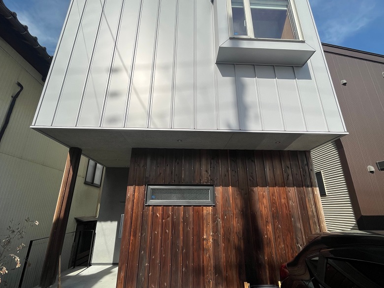 ボックス型のグレーの外壁部分が浮いているような、かっこいい感じになってきました