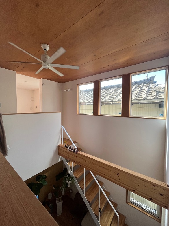 薄かった材に色味がついてきて、床や階段材に合ってきました。