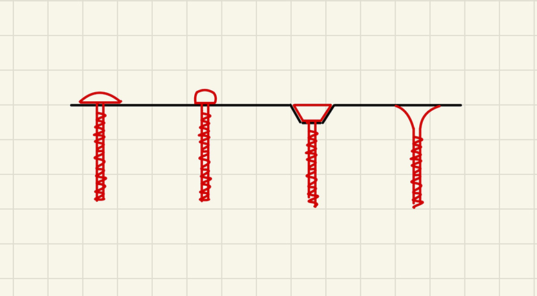 左から順にトラス頭・ナベ頭・皿頭・ラッパ頭となります。