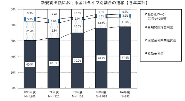 ★このデータからは、変動金利型を選択されている方が全体のおよそ78%を占めていることが判ります。