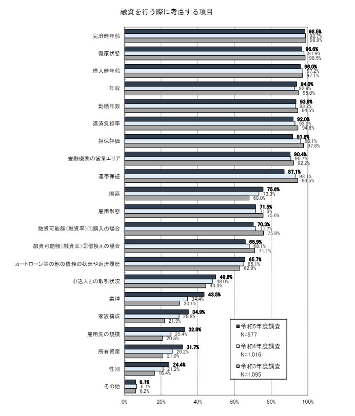 ★このデータから、金融機関が重視しているのは、年齢や健康状態、年収や返済負担率などであることが判ります。