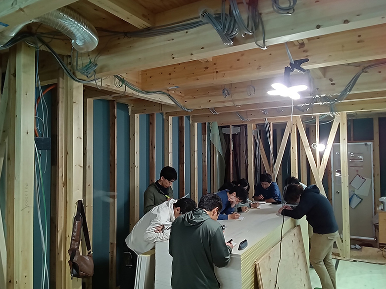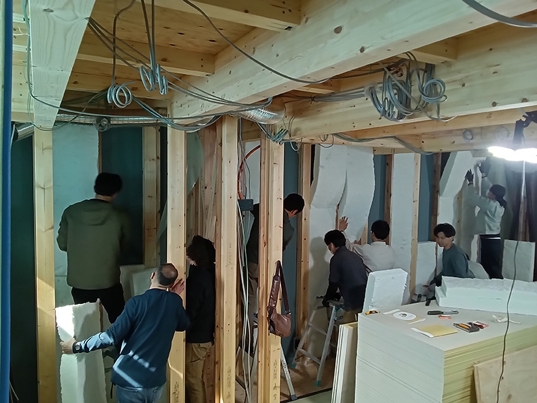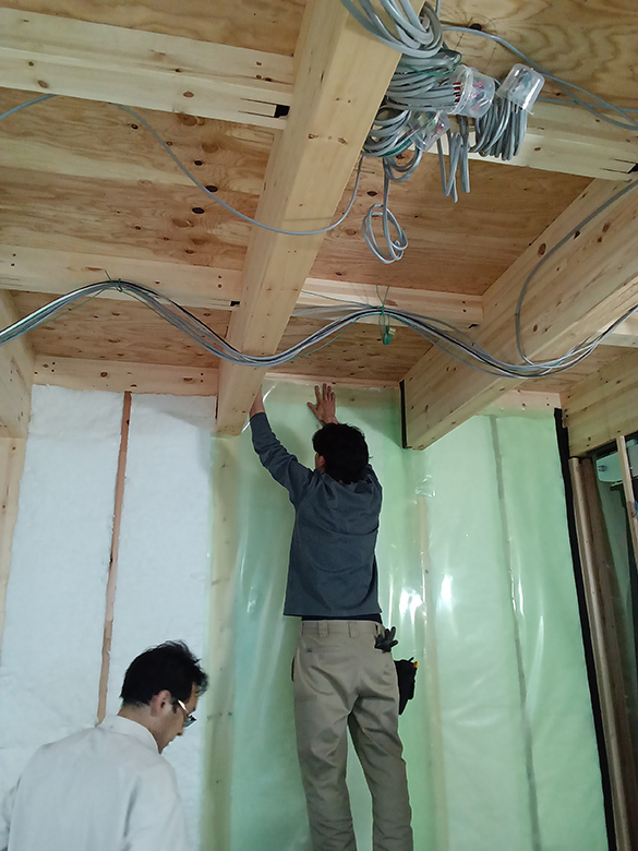 作業を行うことで、充填し辛い箇所の確認・充填する際の注意点・気密シートの施工注意点など再確認することが出来ました。