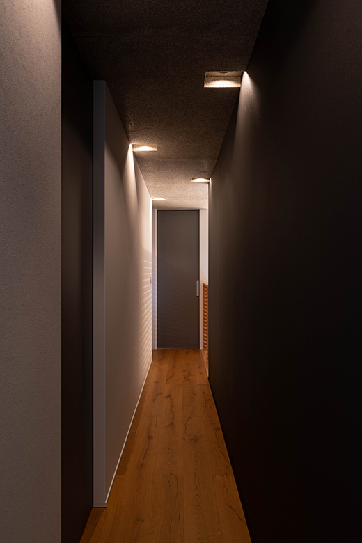 ダウンライトは互い違いの配灯にし、美術館のようなデザインに仕上げています。