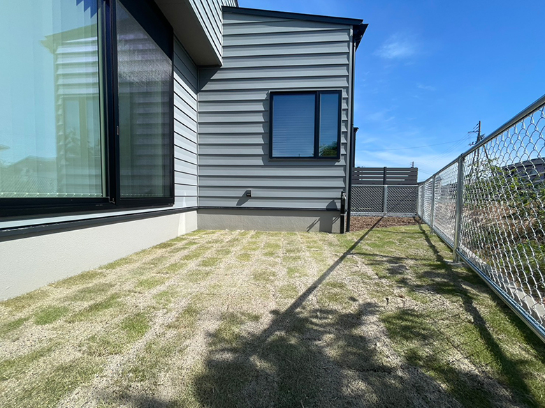天然芝を採用したのですが、、、天然芝が夏の暑さと日差しで枯れてしまいました。