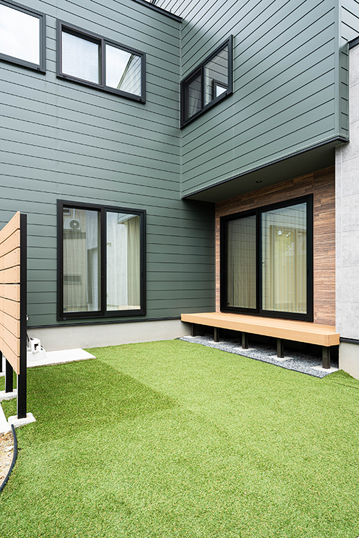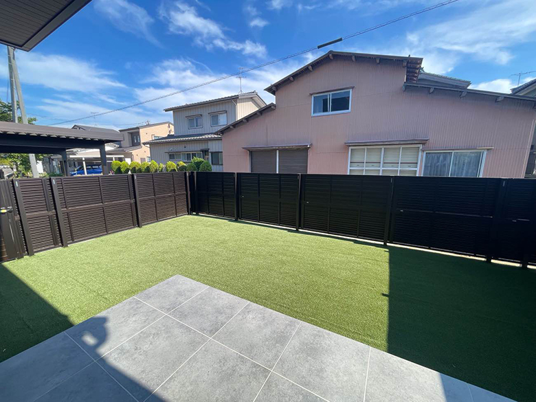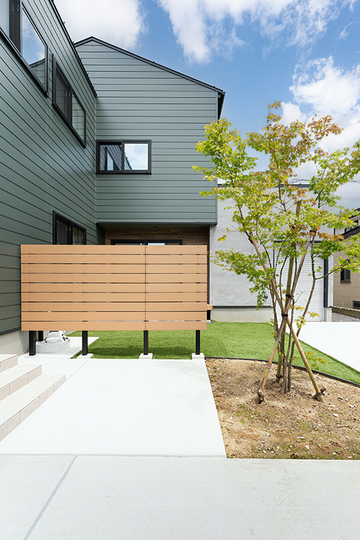 【人工芝×樹脂フェンス×植栽×ウッドデッキ】