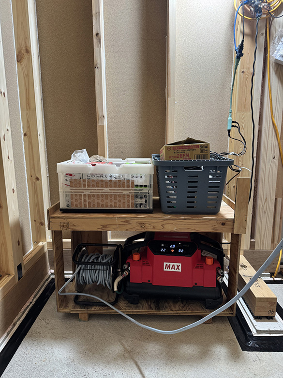 今回の現場では、大工さんが道具の整理整頓のため自作の棚を使っていました!
