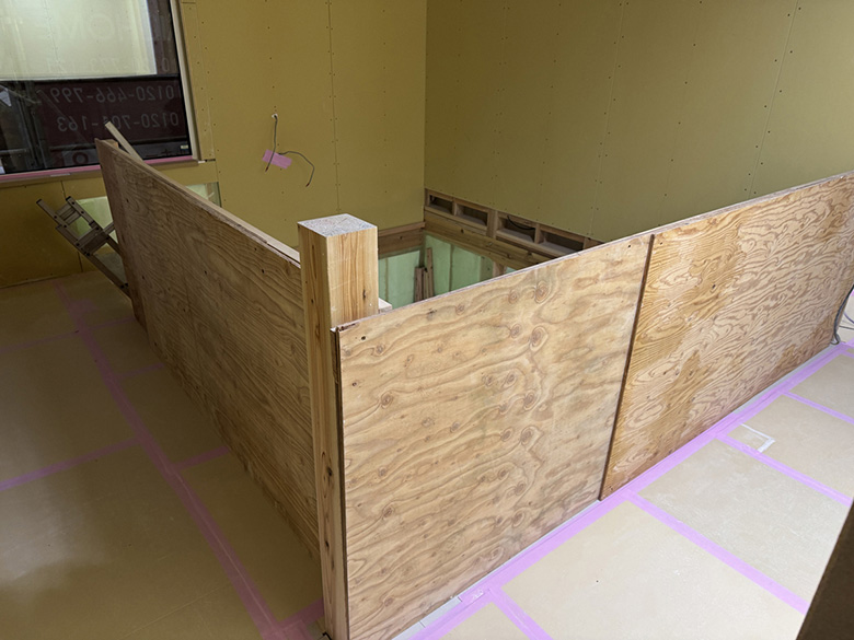 また、吹き抜けがある現場では、転落防止のための囲いを丁寧におこなっておりました。