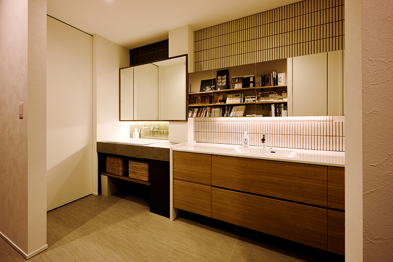 すべての収納タイプを組み合わせた、自由度の高い造作洗面台です。