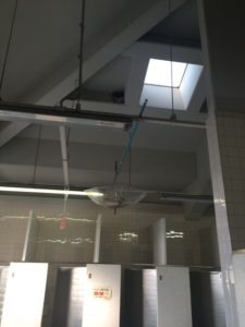 トイレに入ってみると、なぜかビニール傘が吊り下がっている・・・
