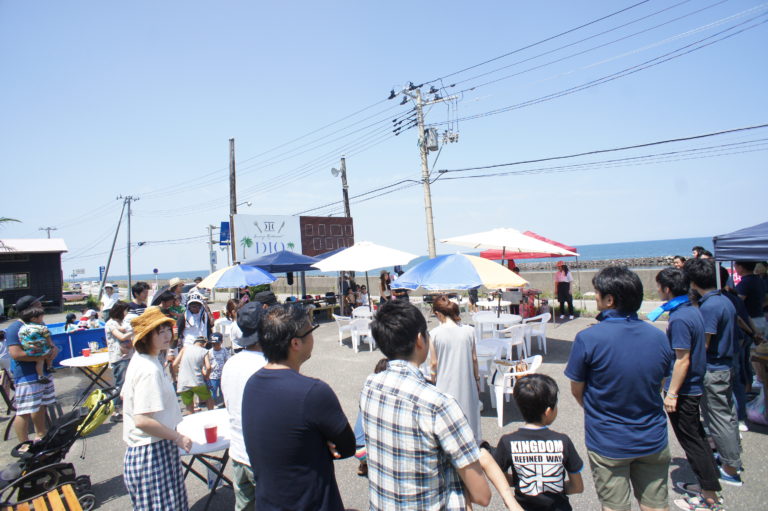 今回はスタッフも合わせて総勢約90名でイベントを出雲崎海岸海の家DIOさんにて開催いたしました!