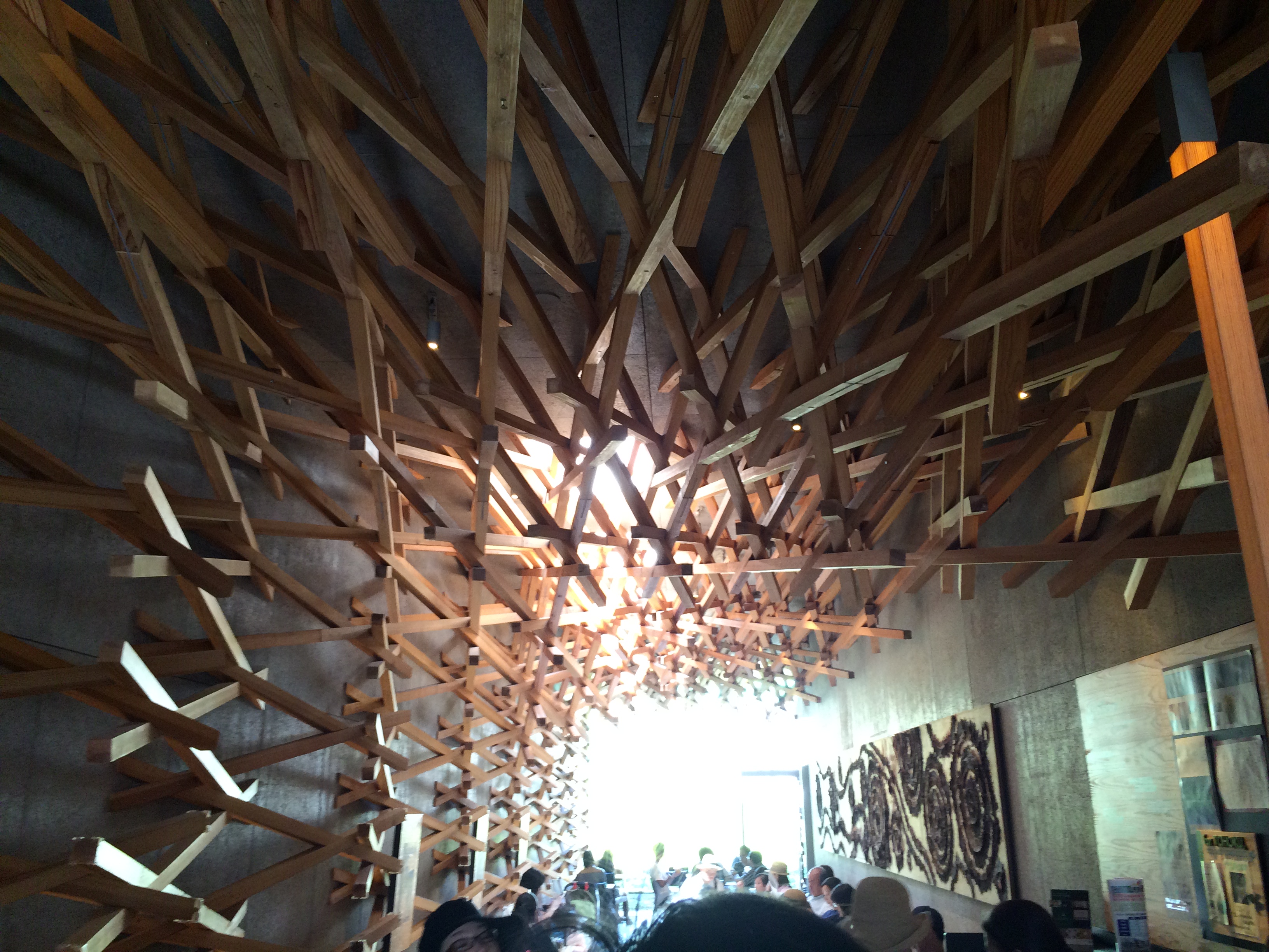 2000本の杉の木材を幾何学的に組み合わせた店内は圧巻の一言。