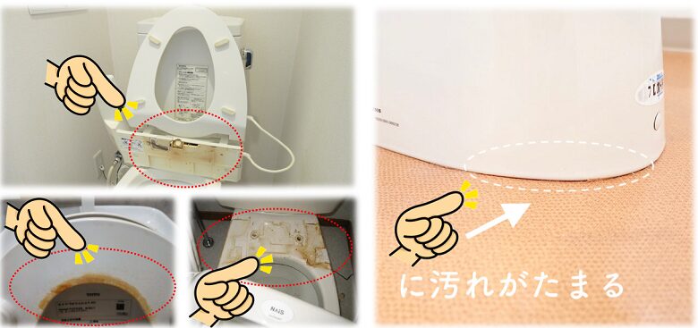スルーしがちな場所は、便座の裏側とその奥!と便器廻りです。