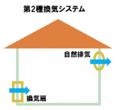 → 給気を機械で排気を自然に行う(第3種と逆)