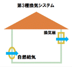 → 給気を自然に排気を機械で行う(第2種と逆)