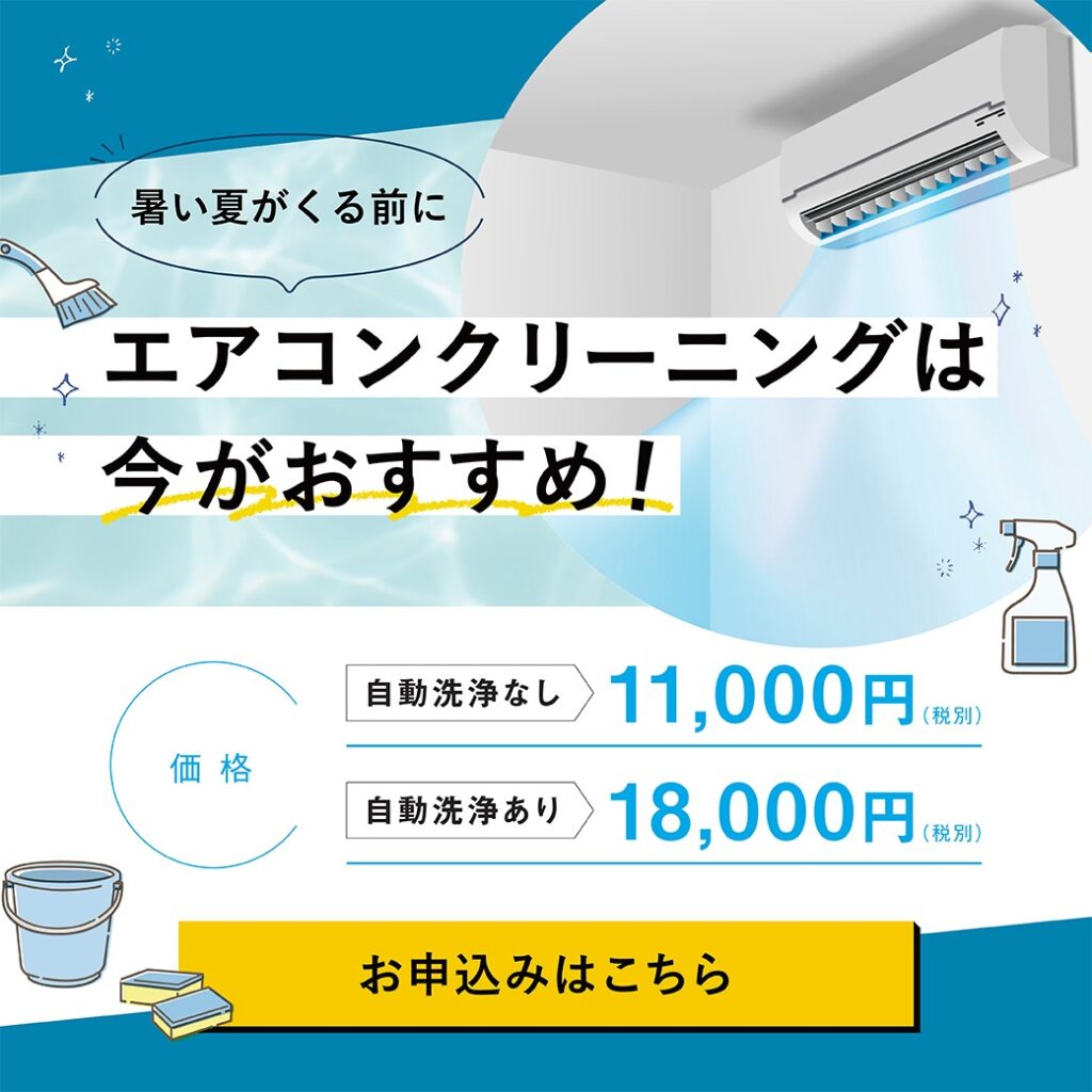 『エアコンクリーニングをお願いしたい』とお伝えいただけるとご案内がスムーズです。
