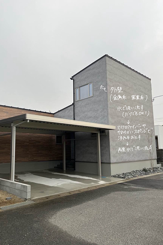 外壁は定期的に水で洗い流す程度のお手入れを推奨しております。