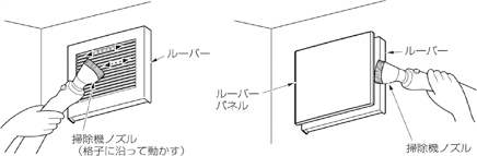2. ルーバー表面をからぶき、または掃除機でホコリを吸い取る。