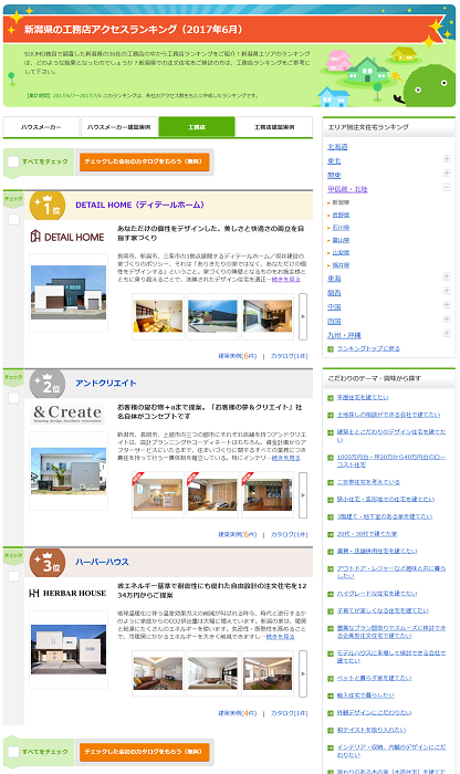 最新の【SUUMO】新潟県の工務店アクセスランキングはこちら