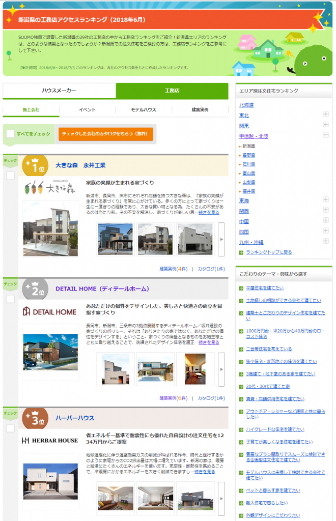 最新の【SUUMO】新潟県の工務店アクセスランキングはこちら
