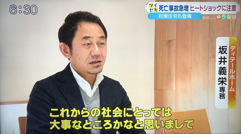 BSNテレビ「ゆうなび」にてヒートショック防止住宅として『Dプレミアム』を取り上げていただきました