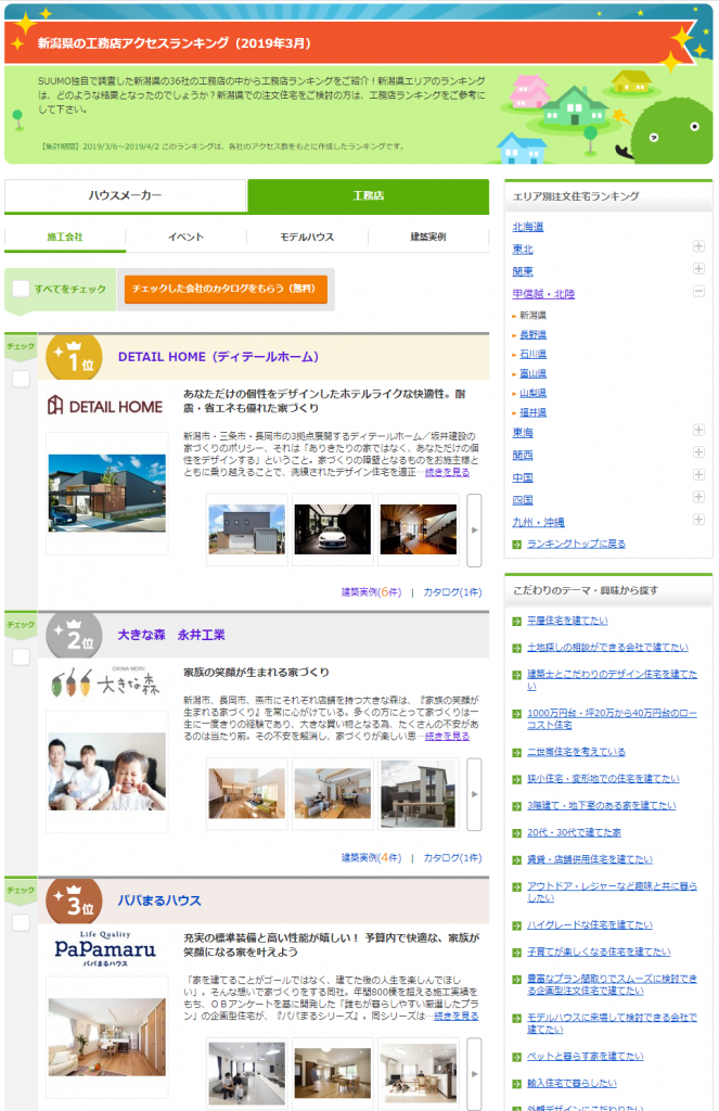 この度、弊社は大手住宅メディアサイトの「SUUMO」にて、2019年3月度の新潟県内の工務店アクセスランキングにて1位を獲得しましたことをお知らせ致します。