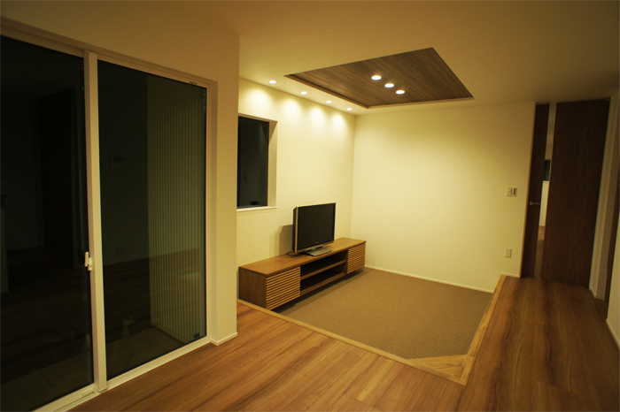 1階のリビングは段差を付け床を下げる事により落ち着いた上質空間を演出