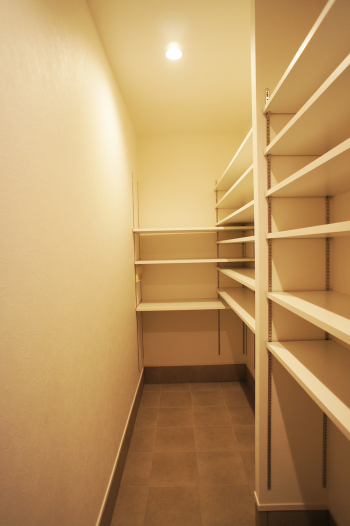 収納能力抜群シューズクローク。ベビーカーや玄関の散らかりがちな靴・コートなどたっぷり収納できる。
