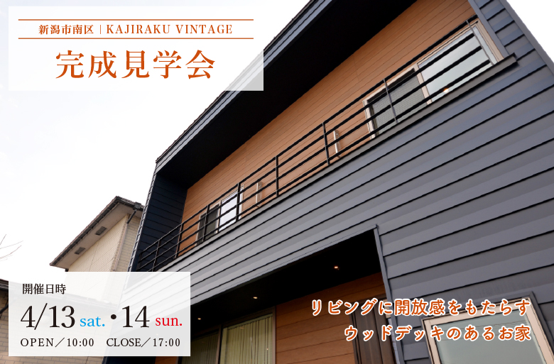 【開催終了】新潟市南区|外部と繋がるアウトドアリビングの家 – KAJIRAKU VINTAGE case.25|完成見学会