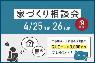 ディテールホーム長岡にて特別相談会を開催! 今回に限り、ご予約の上 … 続きを読む 家づくり特別相談会|来場者にはQUOカード3,000円【完全予約制】