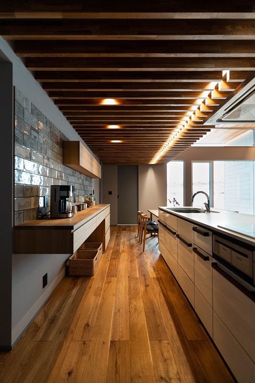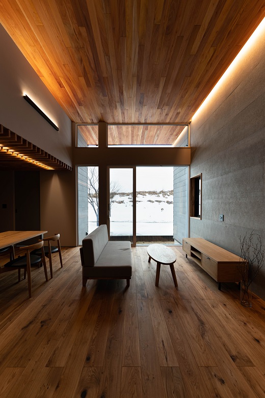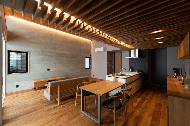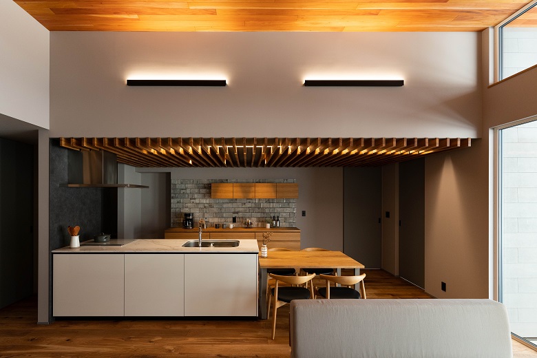 新潟市江南区|1.5階の高天井とカーテンレスのLDKで、海外照明と家具が映える住まい|完成見学会【予約制】