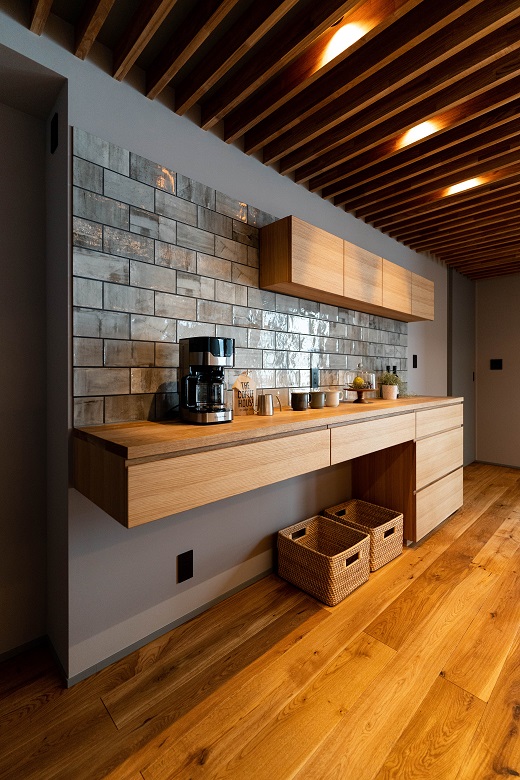 三条市|ブラックタイル×ウォールナットの床が魅せる、シックな23帖リビング|完成見学会【予約制】