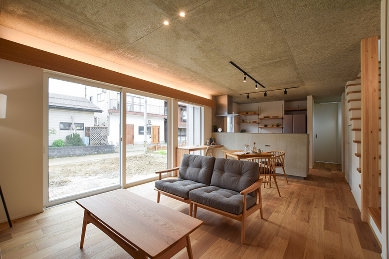 新潟市江南区|1.5階の高天井とカーテンレスのLDKで、海外照明と家具が映える住まい|完成見学会【予約制】