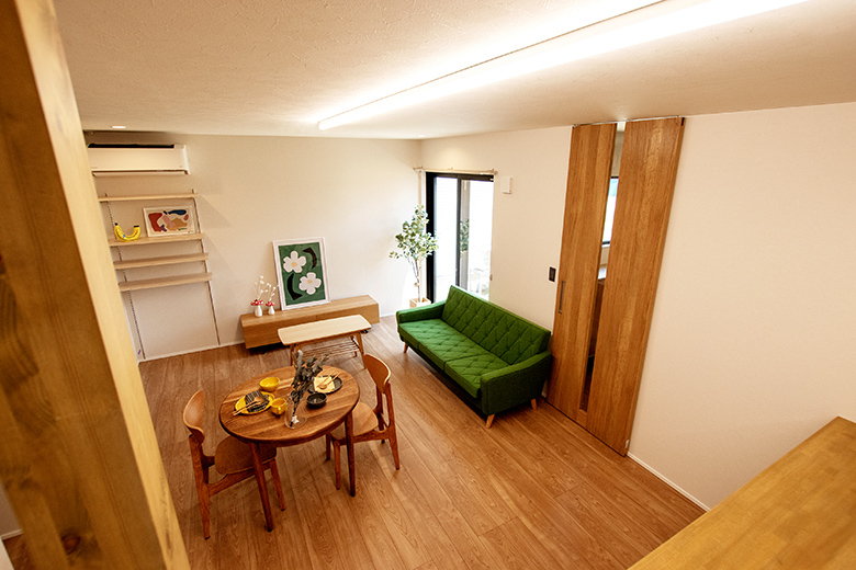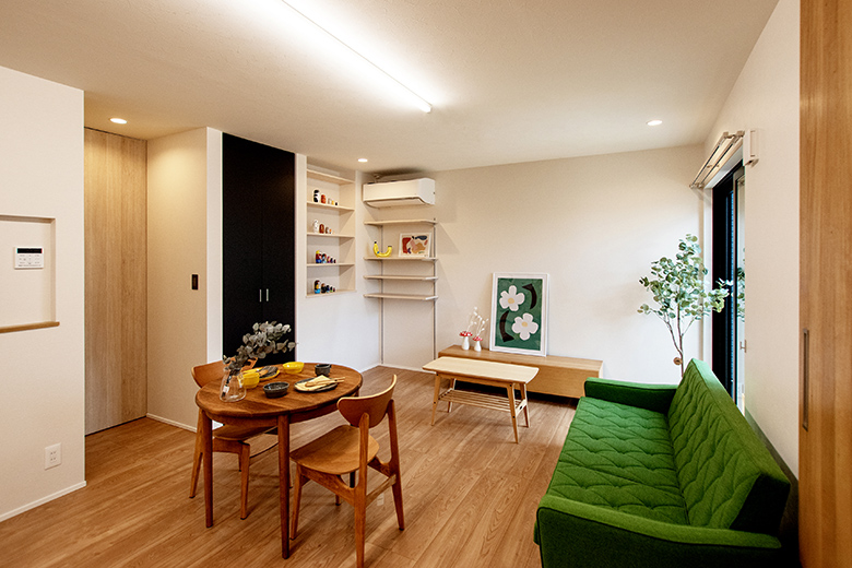 新潟市江南区|1.5階の高天井とカーテンレスのLDKで、海外照明と家具が映える住まい|完成見学会【予約制】