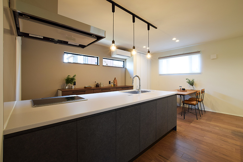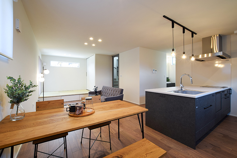 新潟市江南区|1.5階の高天井とカーテンレスのLDKで、海外照明と家具が映える住まい|完成見学会【予約制】