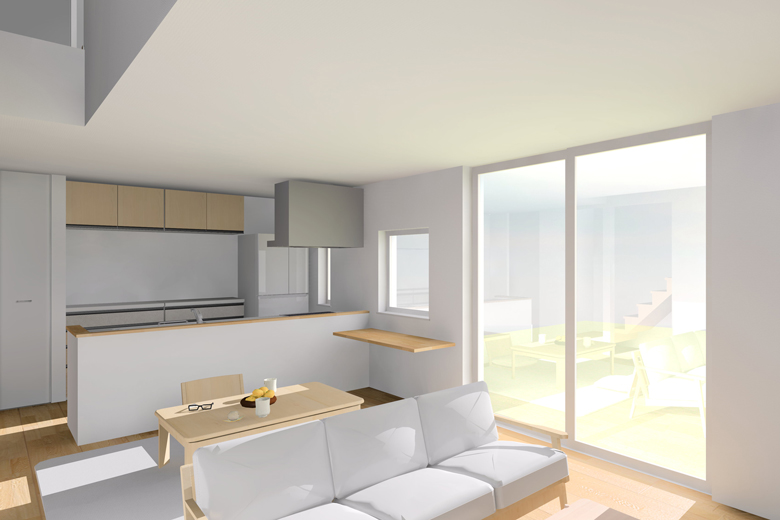 建築費用が高騰する中、5人の家族がそれぞれプライベートな空間を得られるようなコンパクトハウスを設計。