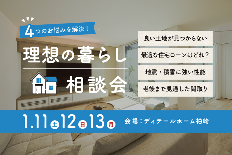 【開催終了】4つのお悩みを解決!理想の暮らし相談会|ディテールホーム柏崎【完全予約制】