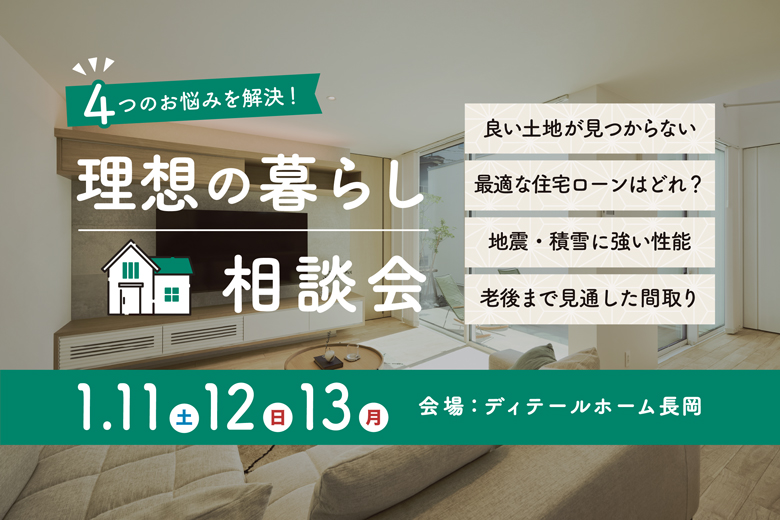 【開催終了】4つのお悩みを解決!理想の暮らし相談会|ディテールホーム長岡【完全予約制】