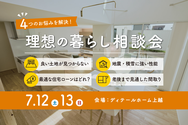 ディテールホーム上越|7.12(土)~13(日) 4つのお悩みを解決!理想の暮らし相談会|ディテールホーム上越【完全予約制】