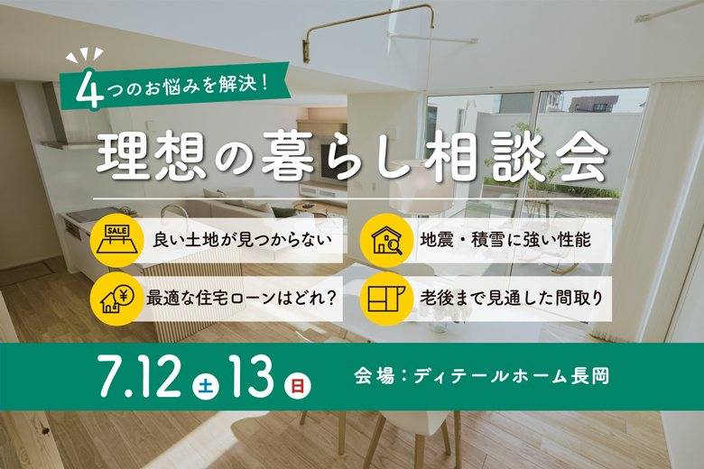 【開催終了】4つのお悩みを解決!理想の暮らし相談会|ディテールホーム長岡【完全予約制】