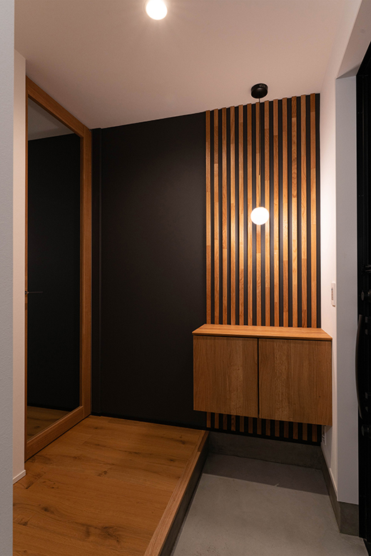 床材にはオークの挽板を採用し、木の力強い表情の中にも優しさを感じられる質感。