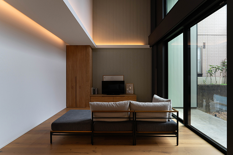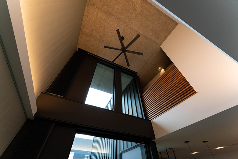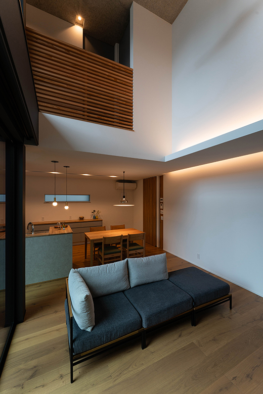 リビングには約5帖の吹き抜けを作り日中の明るさを確保。