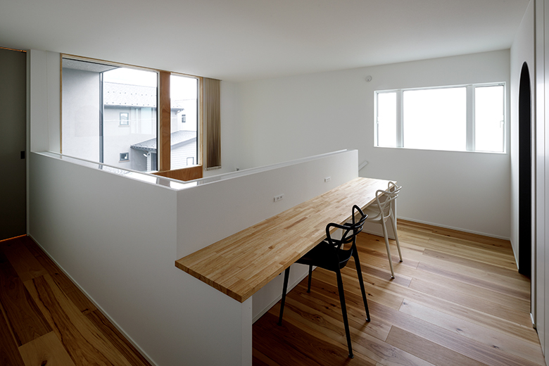 2階は共有空間とは一転し、個別空間の距離感を保つことで、家族間の居心地の良さにも配慮した造りとした。