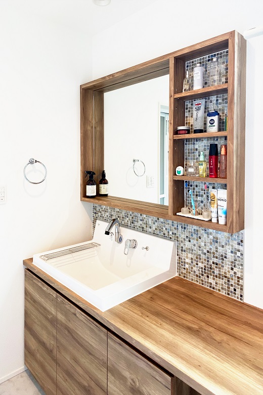 (奥様)私は洗面のタイルが可愛くて気に入っています。お家に来た人みんなから評判なんですよ。