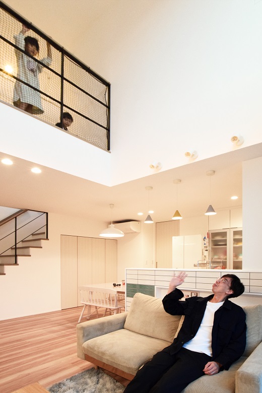 吹き抜けを通して2階にいる子どもたちとコミュニケーションを取れるのが気に入っています。