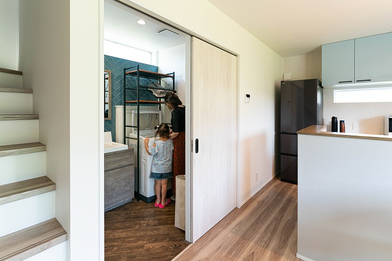 ランドリーからキッチン、お風呂場まで一直線に並んでいて、家事がしやすそうなのがいいと思いましたね。